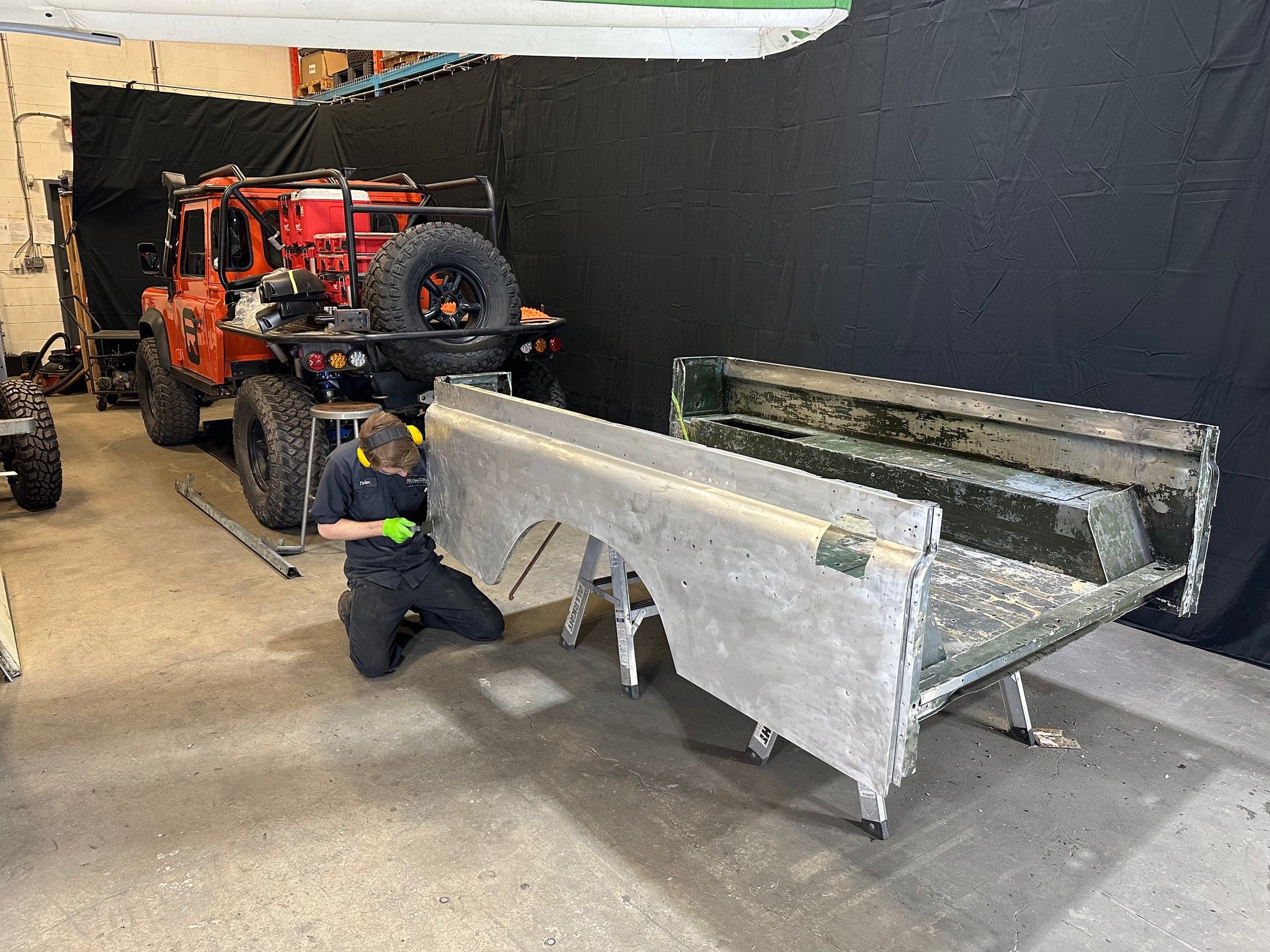 To make the AluCab roof tent work, I needed a 110 body and thus a 2-door Tub. There was a bit of discussion on how to make the 110 based roof work but still keep the bob tailed departure angles of the original buggy. I had a ex-MOD Series 3 109” 2-door tub on the island, so we brought it back to the city at the beginning of March and started cleaning it up. We test fit the 109 tub onto what was left of the chassis and WOW it was so long, it looked so weird. We spent some time thinking about how we could chop the back down at an angle or even shorten up the whole body with a custom build pop-up roof. In the end, we purchased the Alucab Icarus on March 14th. After weeks of power washing, paint striping, metal cleaning, dent repairs, etc. The floor was still just a mess of dents and a few holes. So, I decided to make a new floor with ⅛” aluminum which arrived on March 27. Now we had a shinny new floor, I just couldn’t bring myself to use the old battered up tub. So, we started looking for new tub sides. There were new Land Rover options available, but at significant expense. On a recommendation, I reached out to Aqualu in Kelowna and they were happy to bend and roll a pair of tub sides to my custom specifications. It was a very reasonable price and we were supporting another Canadian business. Now we were building a new tub from scratch. If only I knew how much work this was actually gonna be!